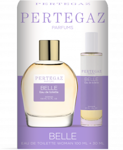 ESTUCHE DUPLO PERTEGAZ BELLE 100 ML + 30 ML:  Esta fragancia pertenece a la genealogía de las fragancias florales con carácter oriental. Sus notas olfativas son grosellas negras, iris y ámbar.